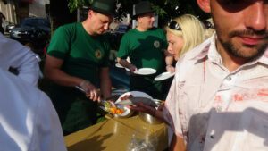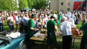 Biłgoraj jako lokalny gospodarz tych uroczystości wraz z okolicznymi miejscowościami również gminnymi i miejskimi m.in. z Józefowa, Tarnogrodu, Zwierzyńca, Biszczy, Ochotniczych Straży i.in. przygotowali i serwowali regionalne potrawy. W tych wysiłkach uczestniczył również Polski Związek Łowiecki w randze Zarządu Okręgowego w Zamościu, przygotowując na tą okoliczność posiłek dla ponad 300-tu pielgrzymów – pieczonego ogromnego dzika. Pieczeniem łącznie z przygotowanymi dodatkami zaszczyciła restauracja- Zajazd Kalinka w Kaczorkach, a dzieleniem, porcjowaniem dla pielgrzymów i nie tylko, popisywali się w rękawiczkach higienicznych, Koledzy z naszego Koła Łowieckiego 46 „BAŻANT” w Biłgoraju, w osobach: Siembida Ryszard, Piotr Jagodziński, Dariusz Grab. ( w załączeniu zdjęcia).